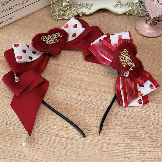 Hairclip Bowknot Charm Rosette Red Beaded Design