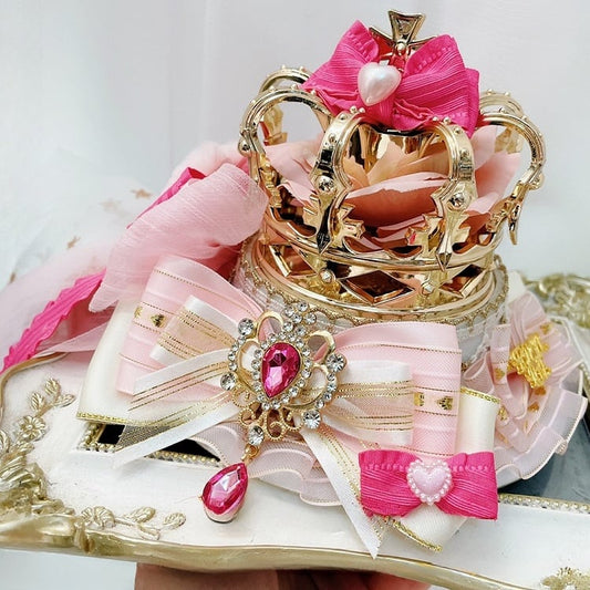 PinkWhite Details Rhinestone Charm Crown Jirai Mini Kei Hat Bowknot