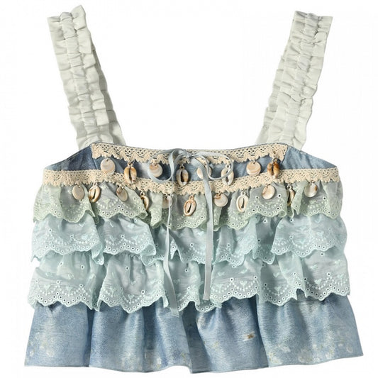 Sleeveless Top Shell Charm Tiered Ruffles Blue