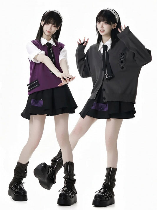 Skirt with Accents Charm JK Uniform White High Free Waist Bowknot