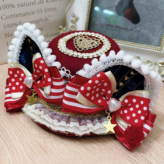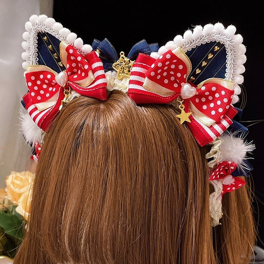 Lace Hat Ears Bowknot Star Mini Details Cat Trim RedBlue Charm