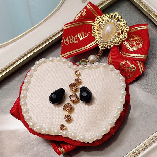 Hairclip Heart Design With Sweet KC Charm Black Lolita Rhinestone