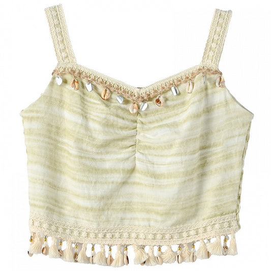 Cami Top Tassel Shell Charm Green Slim-fitting Hem