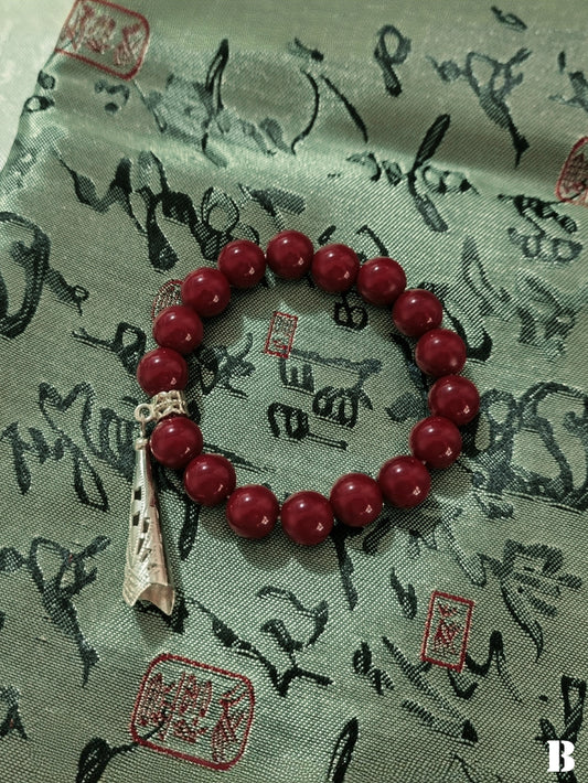 Chinoiserie Copper Coin Charms Red Beaded Bracelet