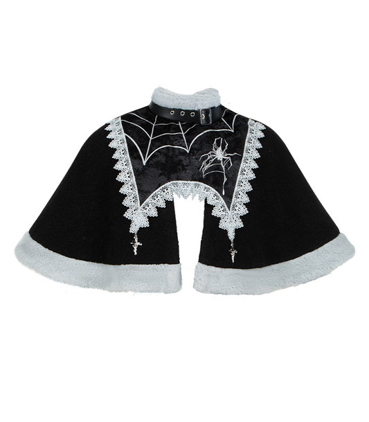 White and Black Gothic Lolita Outfit Shirt + Cross Charms Curved Hem Waistcoat + Spider Web Fabric Skirt Full Set