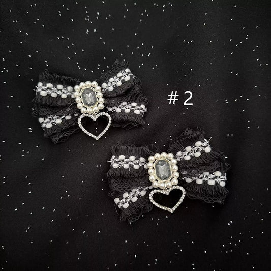 Black Jirai Kei Rhinestone with Heart Charm Bowknot Hairclips