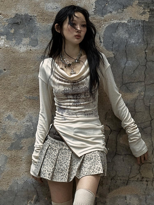 Vintage Punk Cross Apricot Ruched Top Zip Hem