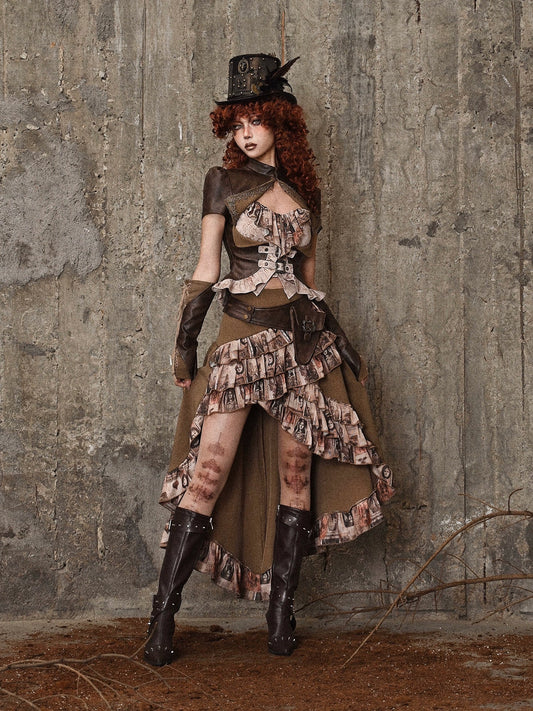 Bag Ruffle Trailing Skirt PU Waist Steampunk Antique Retro