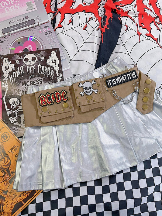 Khaki Skeleton Applique Chain Punk Waist Bag