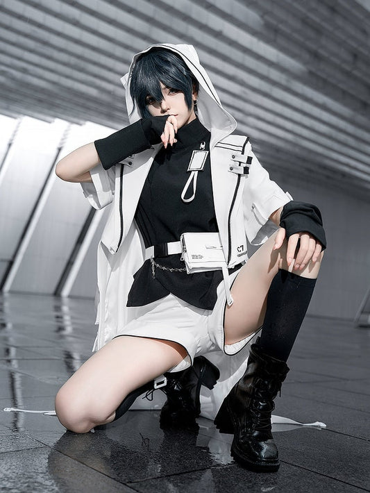 White Belt Buckle Waist Bag with Techwear Cyberpunk