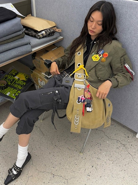 Khaki Wasteland Punk Ita Bag with Sweetheart Charm