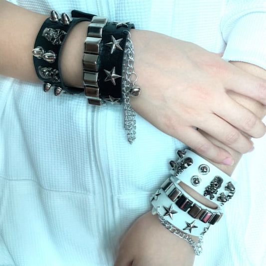 Skeleton and Star Detail Punk Bracelet
