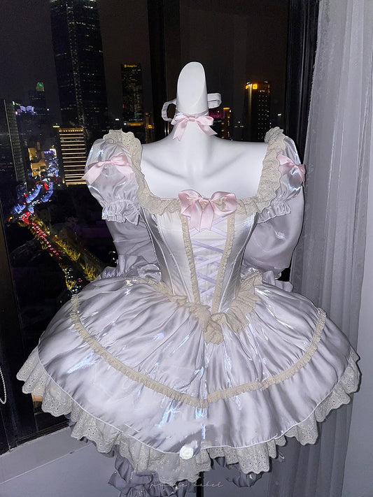 Light Dress Square Neckline and Short Puff Sleeves Sweet Lolita Princess Purple Puffy