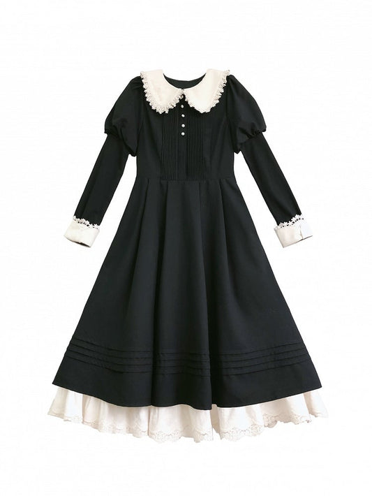 Apron Lolita Sweet Kitty White Maid Embroidery Paw Black and Dress