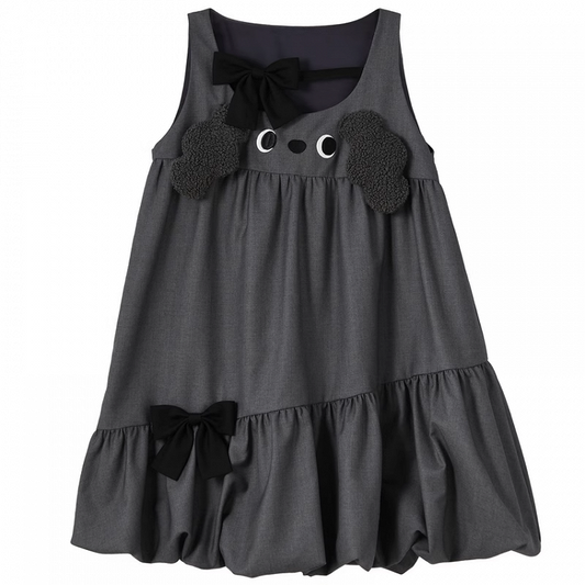 Design Bowknot Dress Bubble Skirt Accents Sleeveless Gray Plush Puppy Ears