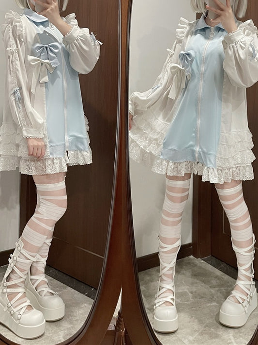 Striped Bows Pattern Sweet Decorated Dress Lolita Blue Pink
