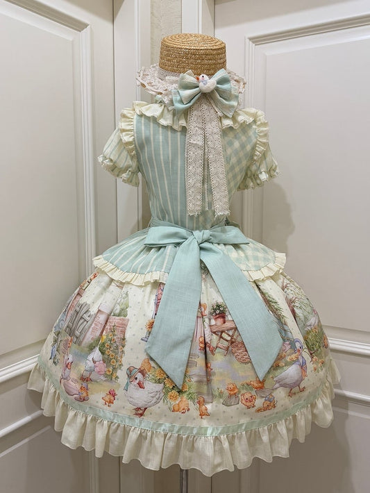 Lolita Short Duckling Sunflower Sweet Print and Sleeves Dress