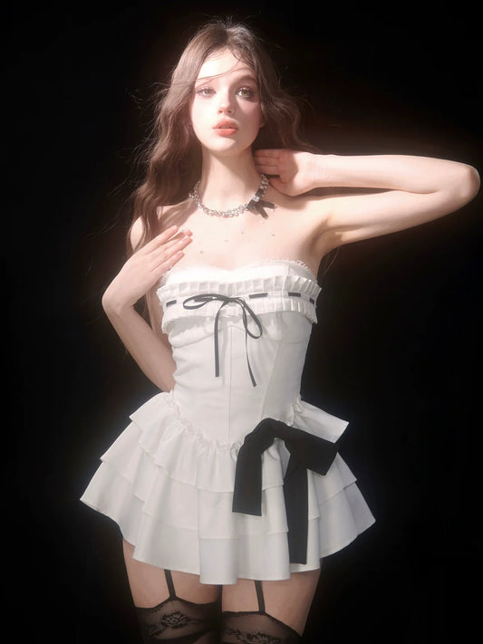 High Black Dress White End Ruffle Cake Ribbon Tube