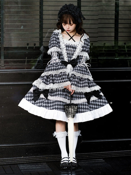 Dress Big Check Lolita Bow