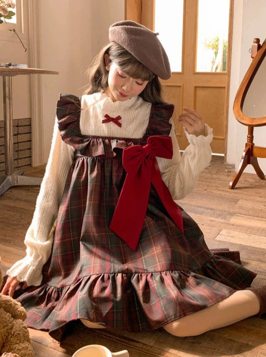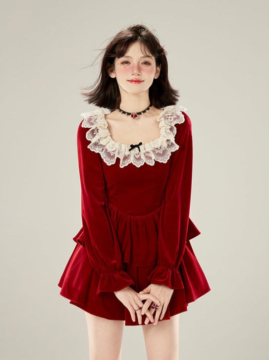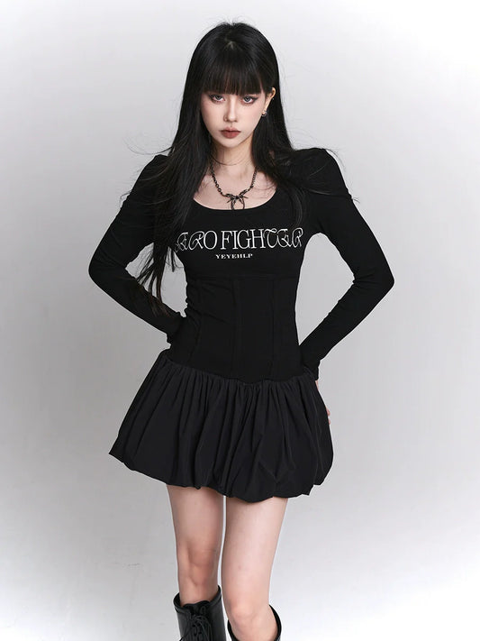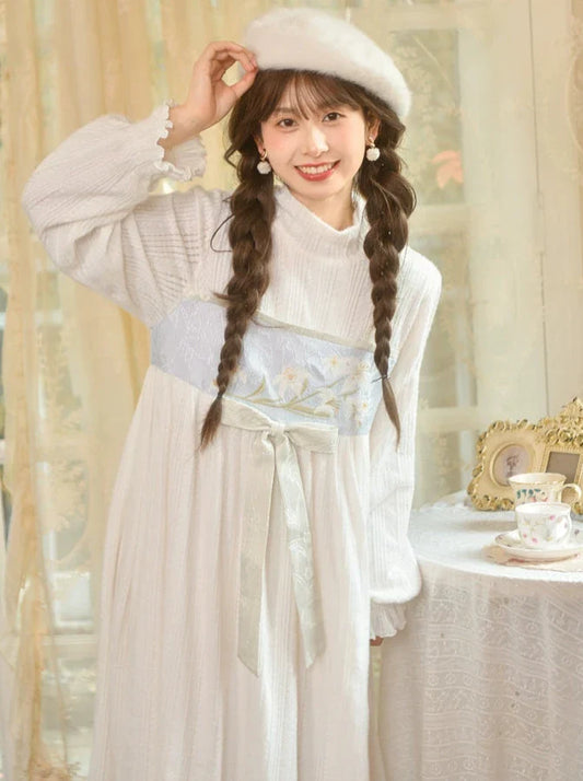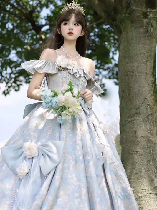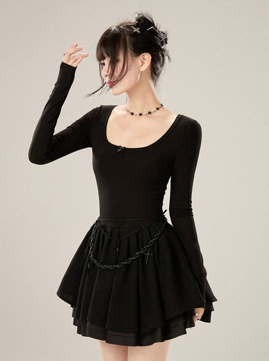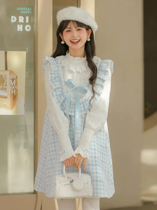 Bell-sleeved Shirt + Shoulder Tulle Bag Skirt Layered Set-up Ribbon Dress Chinese