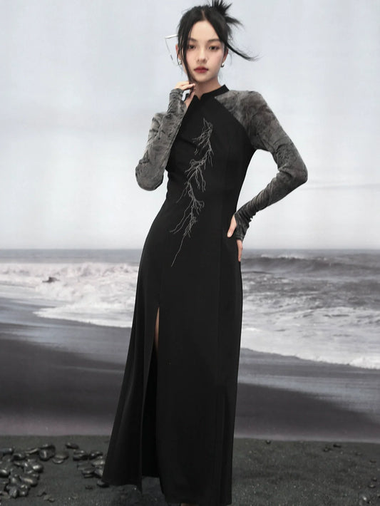 Mode China Slit Dark Dress