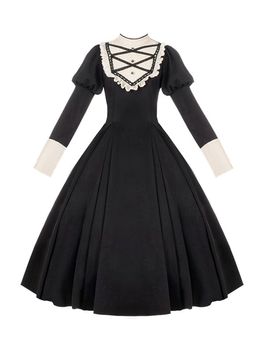 Black Elegant Juliette Sleeves Dress Nun Lolita Long Sleeves One Piece