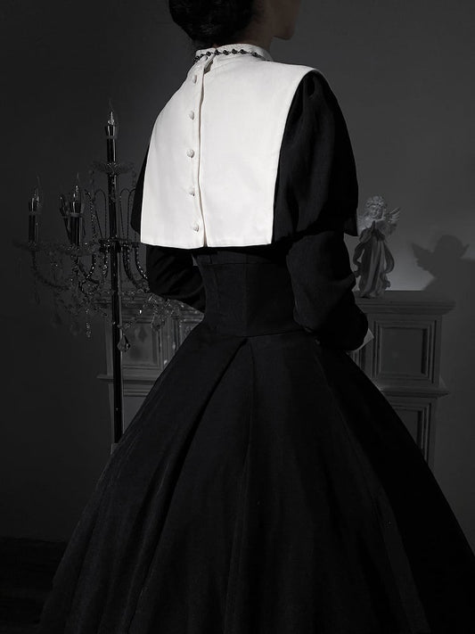 Long Version White Black with Sleeves Dress Lolita Church Gothic Collar Stained Detachable Window