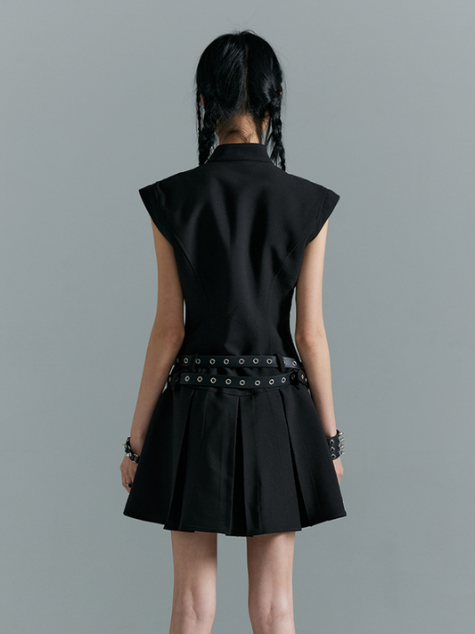 Metal Accents Black Cheongsam A-line Punk Dress With Cutout