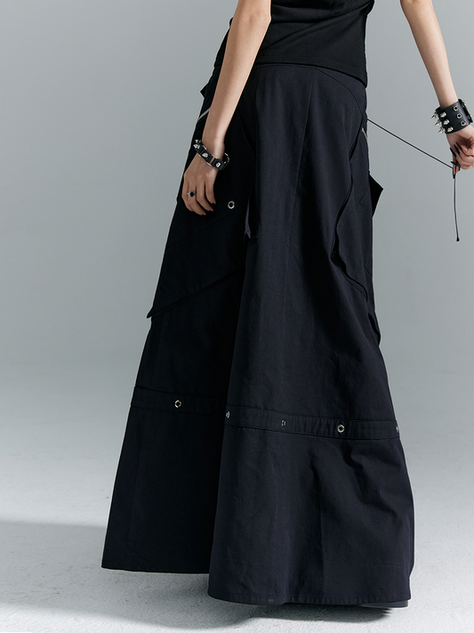 Black A-Line with Buckles Punk Pockets Metal Skirt Zippered