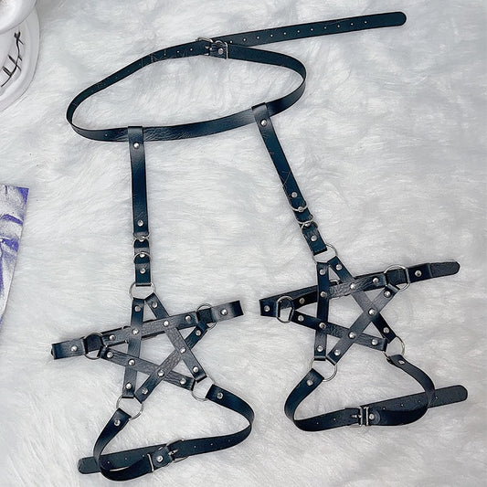 With Black Punk Fashion Gyaru Loop Star Design PU Belt Waist Leg