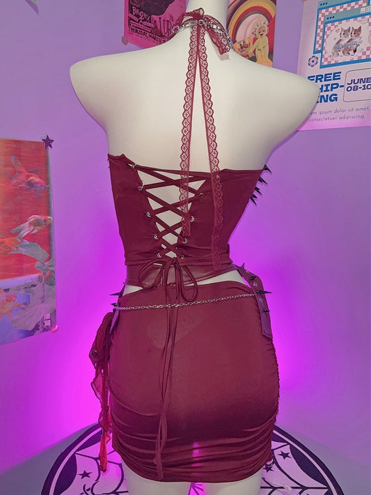 Top + Punk Studs Mini Set Skirt Red