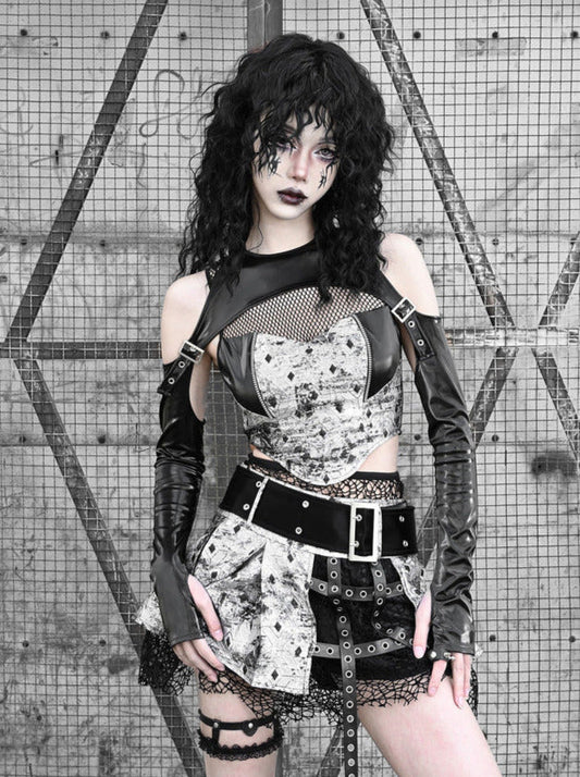 Splicing Lace Jacket Punk Mesh Leather PU Short