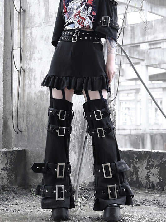 Black Buckle Straps Cyberpunk Skirt