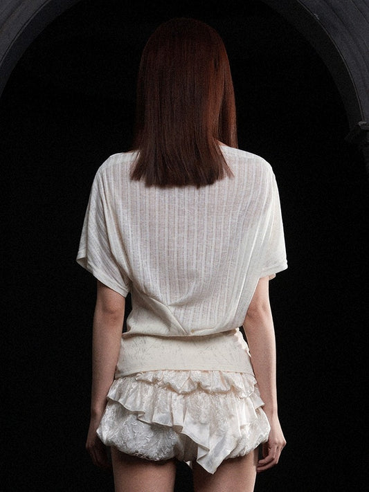 Off-Shoulder Top Punk White Semi-Sheer with Prints