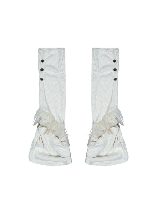 Leg Faux Fur Punk Knit Trim Brown Beige with Buttons Warmers