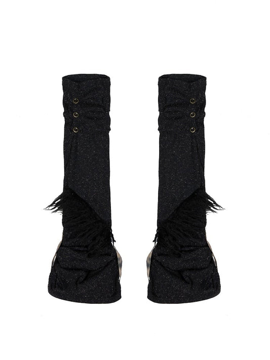Button Punk with Ruched Warmers Rock Black Straps Side Y2K Self-tie Leg