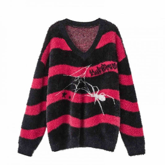 Wasteland Punk Butterfly Applique Black Asymmetrical Neckline Sweater