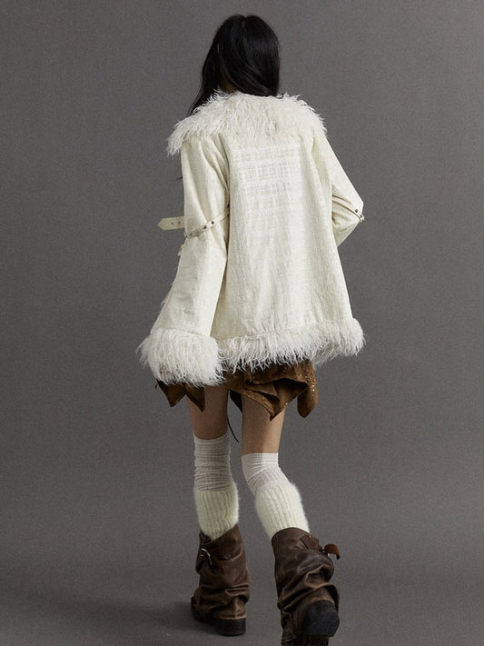 Silver Buckles and Studs Milk White Punk Loose Winter Coat