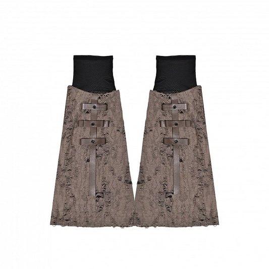 Brown Asymmetrical Floral Trim Wasteland Punk Leg Warmers