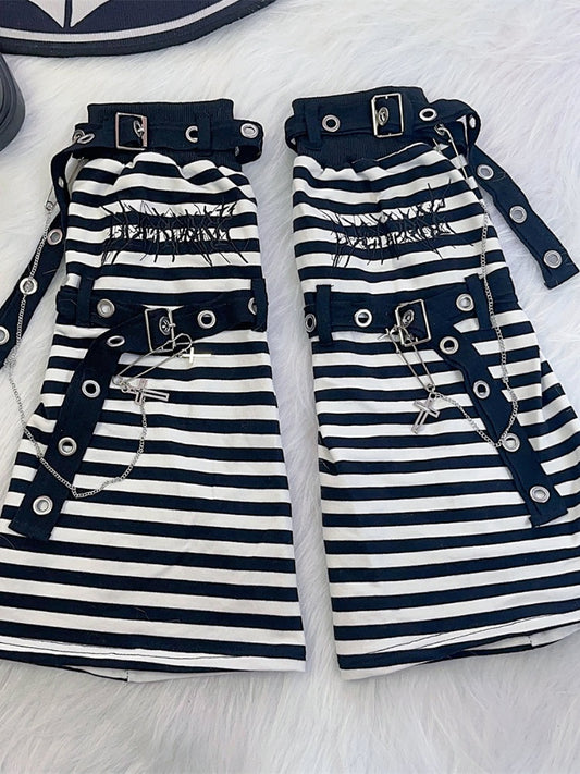 Black & White Stripes With Cross Chain Punk Leg Warmers