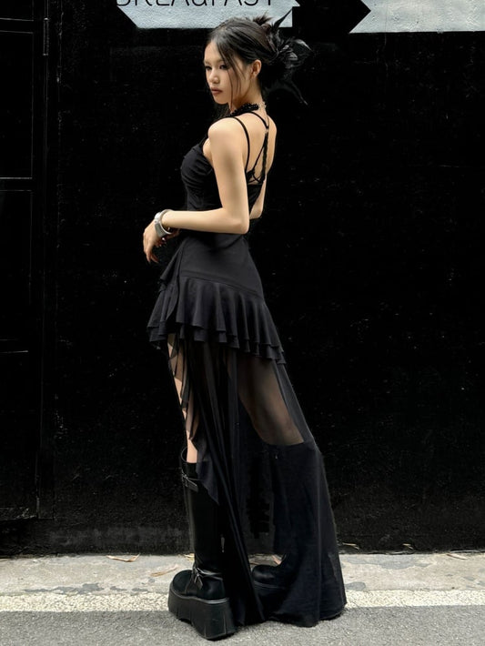 Black Punk Rock Summer Spaghetti Straps Dress