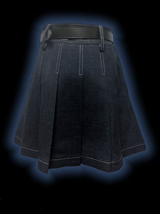 Y2K Dark Blue Letters Cross Charms Punk Rock Denim Pleated Skirt