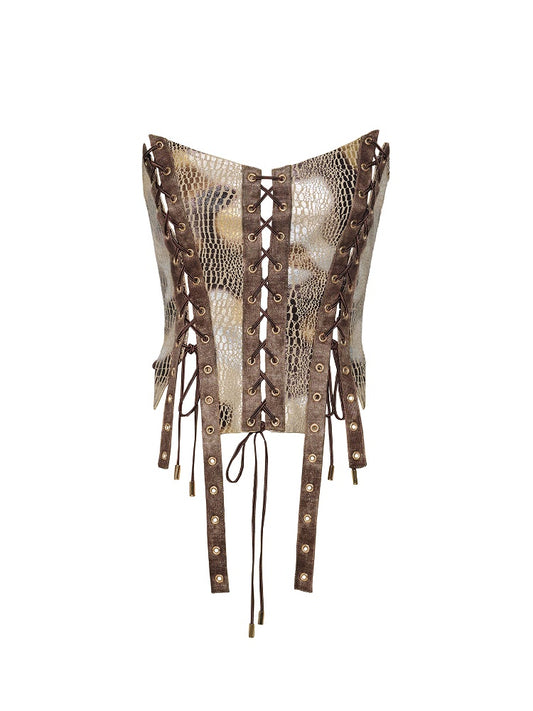 Top Punk Wasteland Snakeskin Trim Pattern Halter Brown Neck Lace