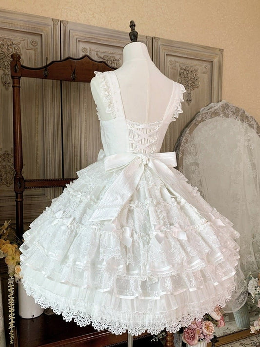 White Layered Skirt Shiro Hanayome Dress Sweet Hime Lolita Jumper Skirt with Removable Bows