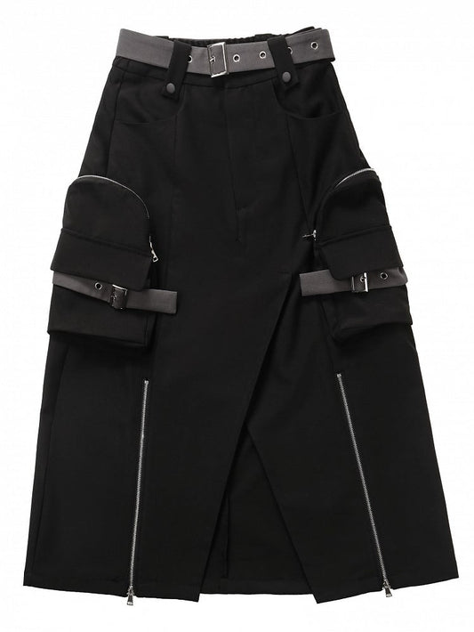 Cargo Long Techwear Wasteland Black Skirt Slit