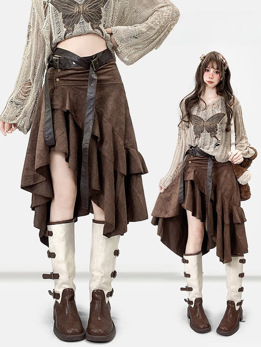 Coffee Hem Wasteland Asymmetrical Skirt Brown Punk