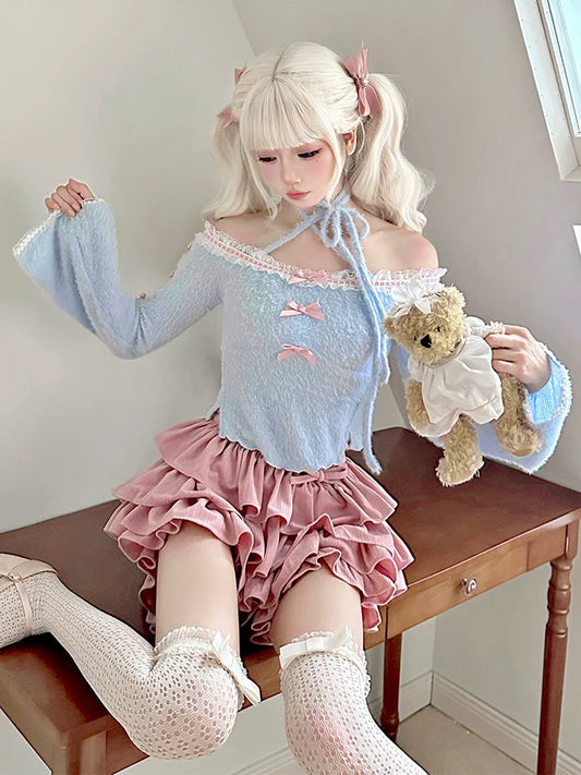 Off-the-shoulder Blue Skirt Pop + Top Cake