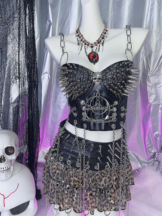 Black Y2K Stud Details PU Punk Top