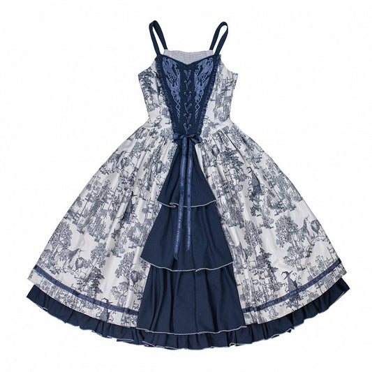 Bodice Forest Elegant Dress and Dark Corset Animals Lolita with Print Blue