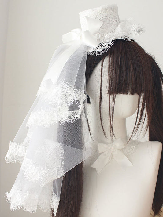 (Detachable Veil Multi-Color KC Lolita Set Bows) Head with Hairclip Lace